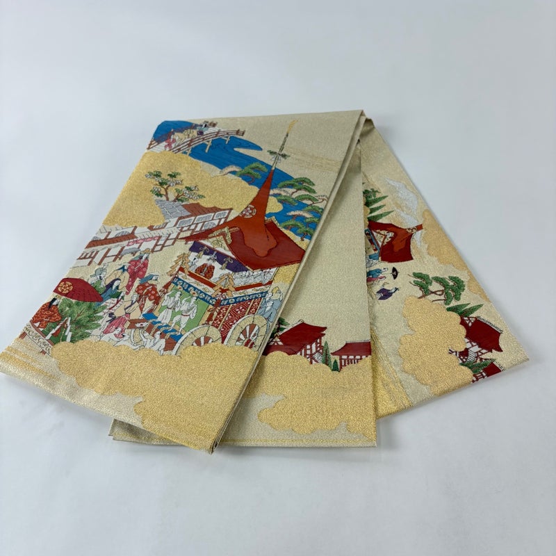 【袋帯】 白系 ベージュ 秀品 A 帯丈436cm以上 7990-9980 美品 二万以下