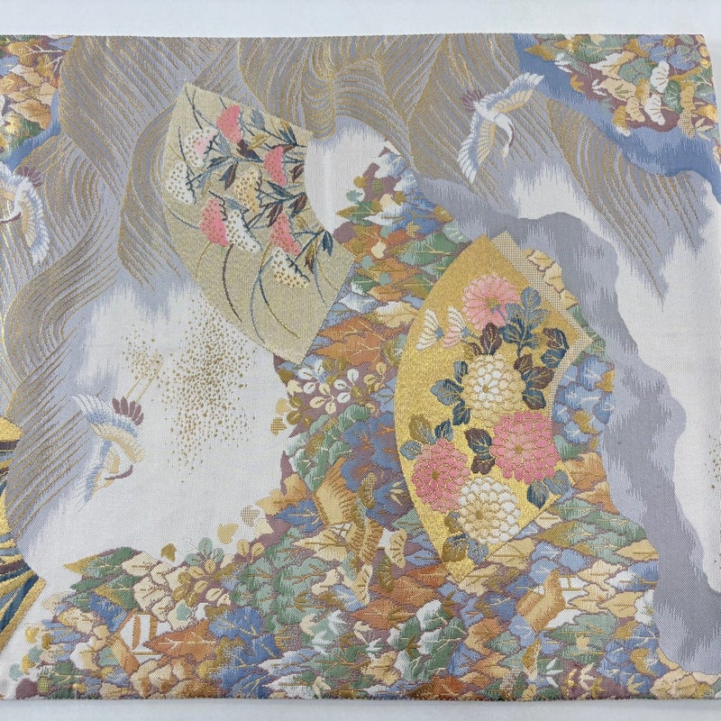 セミフォーマルでお使いいただける袋帯でございます。 見る人に重たい印象を感じさせない女性ならではの、気品豊かな一品です。 前柄に生地のヨレ、表地所々とお太鼓にシワがございます。 裏地所々にシワがございます。 リユース品としては良い状態で、まだまだご活用頂けると思われます。 ※なお、厳しく商品の状態確認を行っておりますが、記載の汚れ以外にも見落とし箇所がある可能性がある旨ご了承いただけますと幸いです。 沢山の商品の中からご覧いただき誠にありがとうございます。