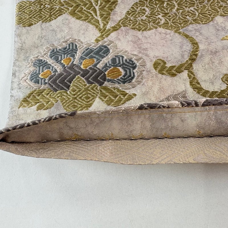 セミフォーマルでお使いいただける袋帯でございます。 見る人に重たい印象を感じさせない女性ならではの、気品豊かな一品です。 締め跡がございます。 中無地所々にシワがございます。 リユース品としては目立った染み傷なく、状態の良いお品でございます。 ※なお、厳しく商品の状態確認を行っておりますが、記載の汚れ以外にも見落とし箇所がある可能性がある旨ご了承いただけますと幸いです。 沢山の商品の中からご覧いただき誠にありがとうございます。