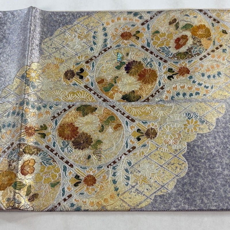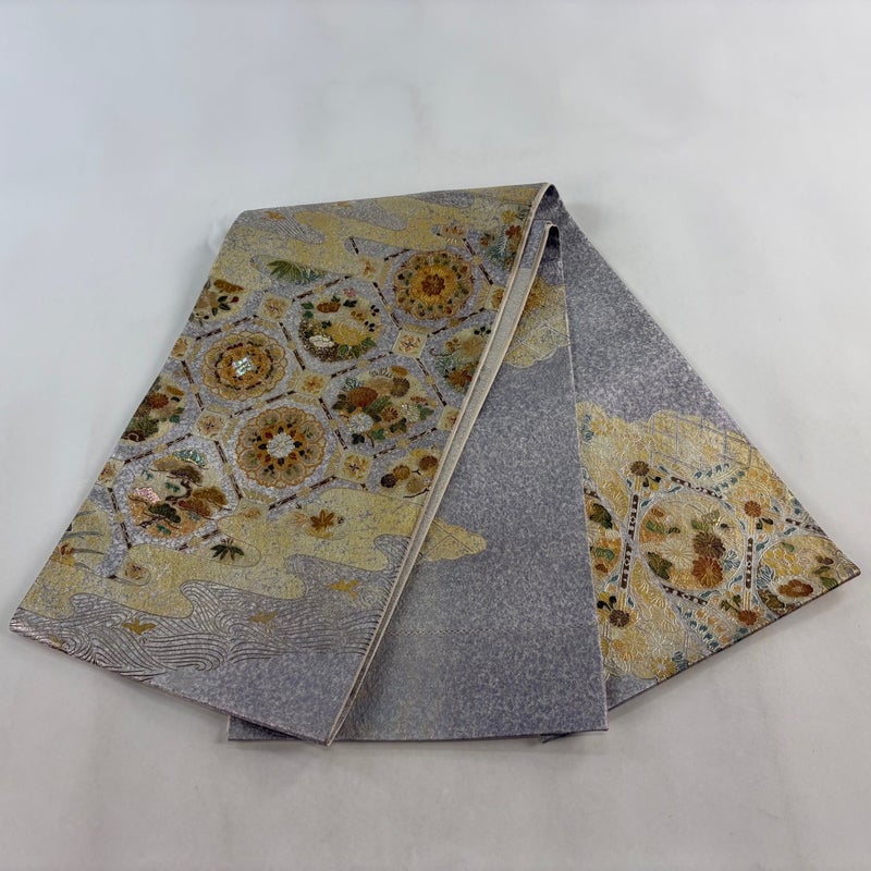 【袋帯】 金・銀系 銀色 秀品 A 帯丈436cm以上 7990-9980 美品 二万以下