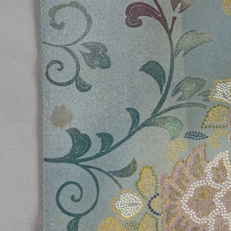 おめでたい席に相応しい意匠の袋帯でございます。 格式高いお席にもお使いいただけますので、お見逃しのないようお願いいたします。 締め跡がございます。 お太鼓にシミ、締め跡沿いにシワ、表地所々に彩の変色がございます。 リユース品としては良い状態で、まだまだご活用頂けると思われます。 ※なお、厳しく商品の状態確認を行っておりますが、記載の汚れ以外にも見落とし箇所がある可能性がある旨ご了承いただけますと幸いです。 沢山の商品の中からご覧いただき誠にありがとうございます。 ※為書きがございます。