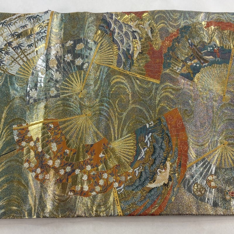 おめでたい席に相応しい意匠の袋帯でございます。 格式高いお席にもお使いいただけますので、お見逃しのないようお願いいたします。 表地全体にシワがございます。 ※締め跡がお太鼓を含む帯全体にございます。 リユース品としては良い状態で、まだまだご活用頂けると思われます。 ※なお、厳しく商品の状態確認を行っておりますが、記載の汚れ以外にも見落とし箇所がある可能性がある旨ご了承いただけますと幸いです。 沢山の商品の中からご覧いただき誠にありがとうございます。