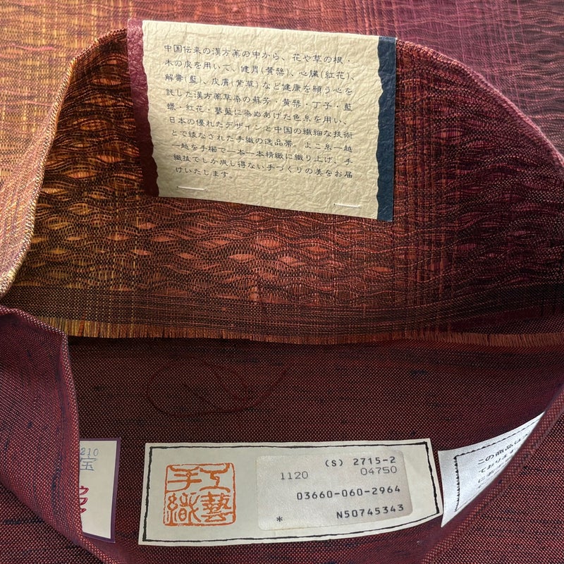 【袋帯】 赤系 えんじ色 名品 A 帯丈436cm以上 9990-29990 美品 二万以下