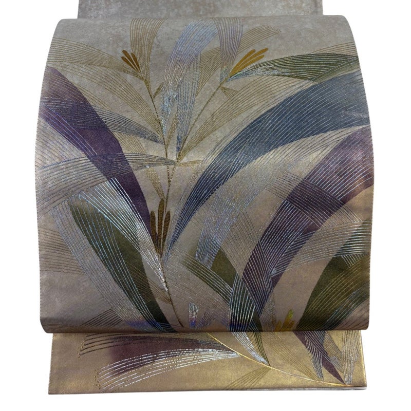 セミフォーマルでお使いいただける袋帯でございます。 見る人に重たい印象を感じさせない女性ならではの、気品豊かな一品です。 締め跡がございます。 中無地締め跡沿いにシミがございます。 リユース品としては良い状態で、まだまだご活用頂けると思われます。 ※なお、厳しく商品の状態確認を行っておりますが、記載の汚れ以外にも見落とし箇所がある可能性がある旨ご了承いただけますと幸いです。 沢山の商品の中からご覧いただき誠にありがとうございます。
