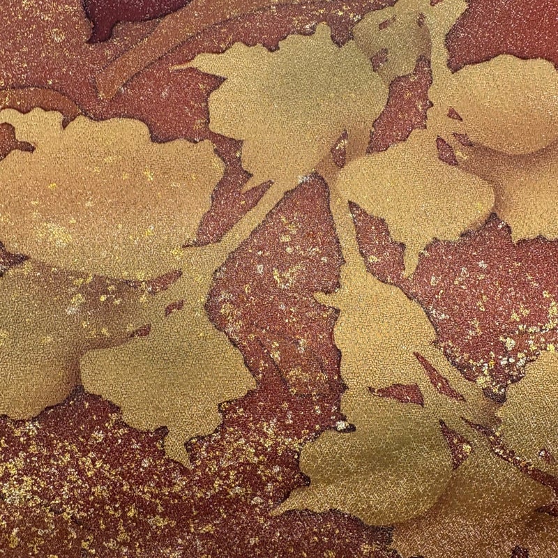 「洋服中心の現代でも、生活空間の中に溶け込む着物」がコンセプトの染織作家「丹下雄介」の作品です。 セミフォーマルでお使いいただける袋帯でございます。 見る人に重たい印象を感じさせない女性ならではの、気品豊かな一品です。 締め跡がございます。 お太鼓柄部分に若干の金彩の変色がございます。 裏地に生地のヨレがございます。 リユース品としては目立った染み傷なく、状態の良いお品でございます。 ※なお、厳しく商品の状態確認を行っておりますが、記載の汚れ以外にも見落とし箇所がある可能性がある旨ご了承いただけますと幸いです。 沢山の商品の中からご覧いただき誠にありがとうございます。