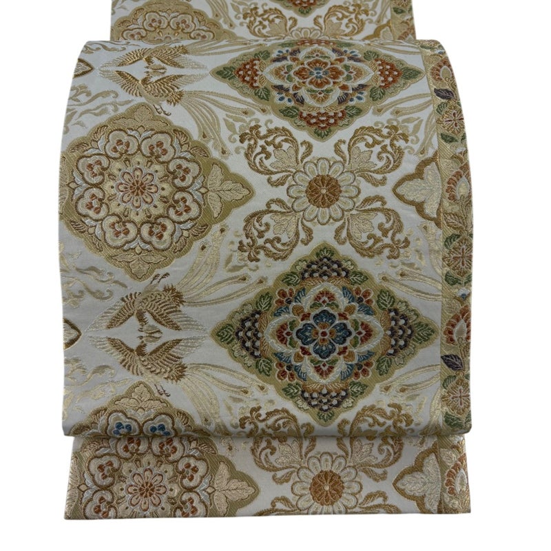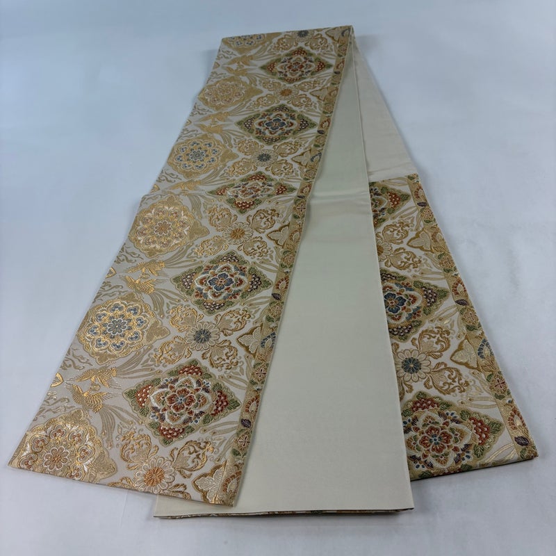 【袋帯】 白系 ベージュ 秀品 A 帯丈436cm以上 7990-9980 美品 二万以下