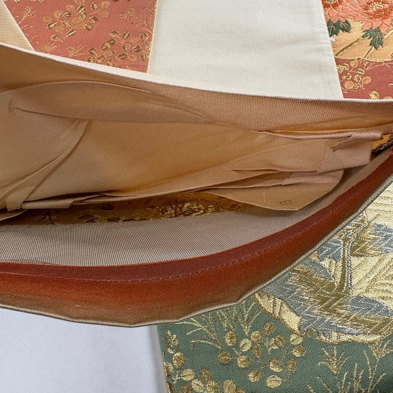 おめでたい席に相応しい意匠の袋帯でございます。 格式高いお席にもお使いいただけますので、お見逃しのないようお願いいたします。 中無地に生地のヨレ、手先にヤケ、お太鼓にシワがございます。 裏地にヤケがございます。 リユース品としては良い状態で、まだまだご活用頂けると思われます。 ※なお、厳しく商品の状態確認を行っておりますが、記載の汚れ以外にも見落とし箇所がある可能性がある旨ご了承いただけますと幸いです。 沢山の商品の中からご覧いただき誠にありがとうございます。