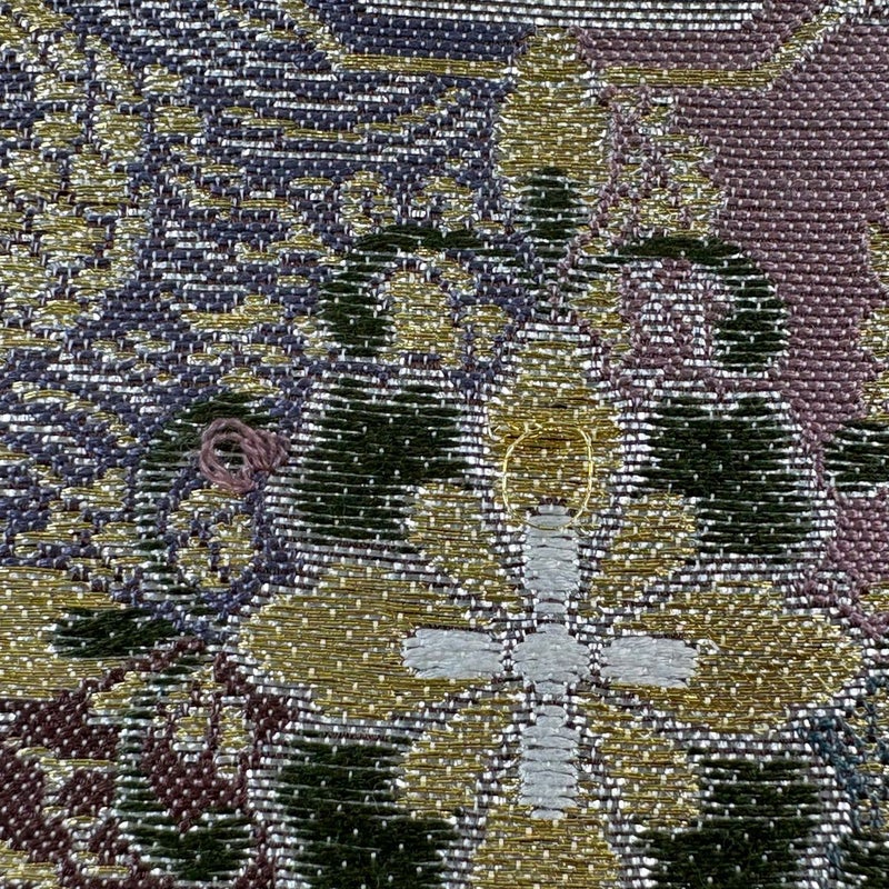 おめでたい席に相応しい意匠の袋帯でございます。 格式高いお席にもお使いいただけますので、お見逃しのないようお願いいたします。 締め跡がございます。 お太鼓垂先間に糸つれがございます。 リユース品としては目立った染み傷なく、状態の良いお品でございます。 ※なお、厳しく商品の状態確認を行っておりますが、記載の汚れ以外にも見落とし箇所がある可能性がある旨ご了承いただけますと幸いです。 沢山の商品の中からご覧いただき誠にありがとうございます。