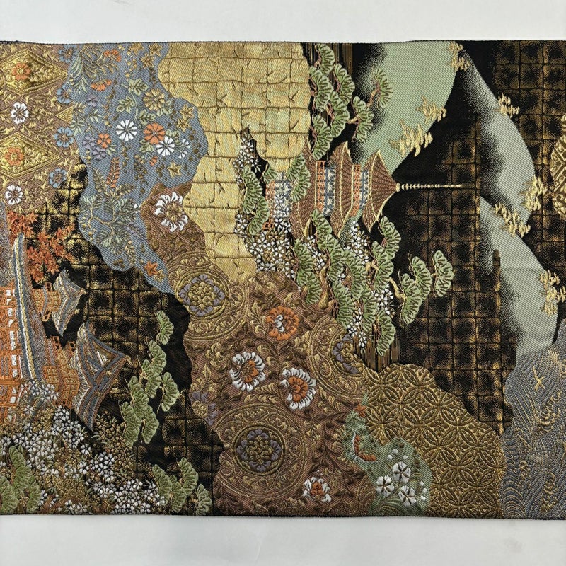 【袋帯】 黒系 黒 秀品 A 帯丈436cm以上 7990-9980 美品 二万以下