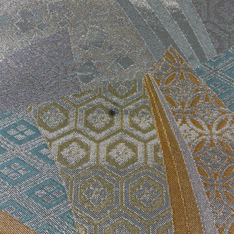 軍配マークと三本線が特徴の「川島織物」謹製の作品です。 おめでたい席に相応しい意匠の袋帯でございます。 格式高いお席にもお使いいただけますので、お見逃しのないようお願いいたします。 締め跡がございます。 前柄垂先間にシミがございます。 リユース品としては良い状態で、まだまだご活用頂けると思われます。 ※なお、厳しく商品の状態確認を行っておりますが、記載の汚れ以外にも見落とし箇所がある可能性がある旨ご了承いただけますと幸いです。 沢山の商品の中からご覧いただき誠にありがとうございます。