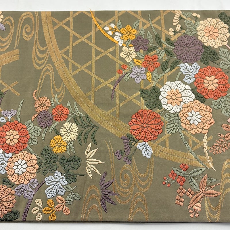 【袋帯】 茶系 茶緑色 名品 B 帯丈436cm以上 9990-29990 二万以下