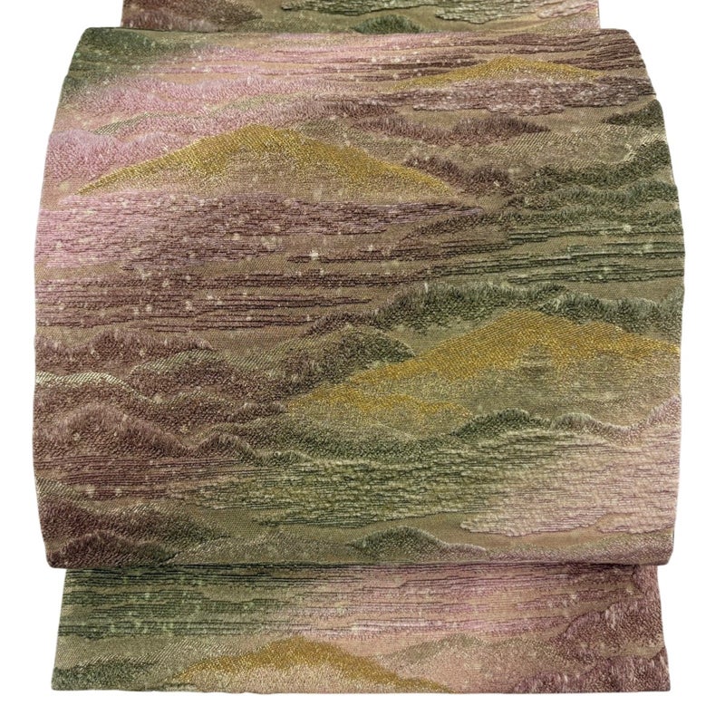 【着物ランク】名品 【素材】正絹 【帯丈】約450cm 【帯幅】約30.5cm 【帯仕立て】仕立て上がり 【状態ランク】ランクA 【帯着用シーン】セミフォーマル(色無地・付下げ)