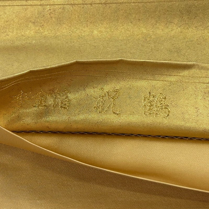 昭和23年に創業した西陣の老舗、「長嶋成織物」の作品です。 おめでたい席に相応しい意匠の袋帯でございます。 格式高いお席にもお使いいただけますので、お見逃しのないようお願いいたします。 締め跡がございます。 締め跡沿いに汚れ、表地所々に金彩の剥がれ、表地所々に金彩の変色がございます。 リユース品としては良い状態で、まだまだご活用頂けると思われます。 ※なお、厳しく商品の状態確認を行っておりますが、記載の汚れ以外にも見落とし箇所がある可能性がある旨ご了承いただけますと幸いです。 沢山の商品の中からご覧いただき誠にありがとうございます。