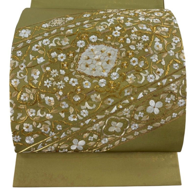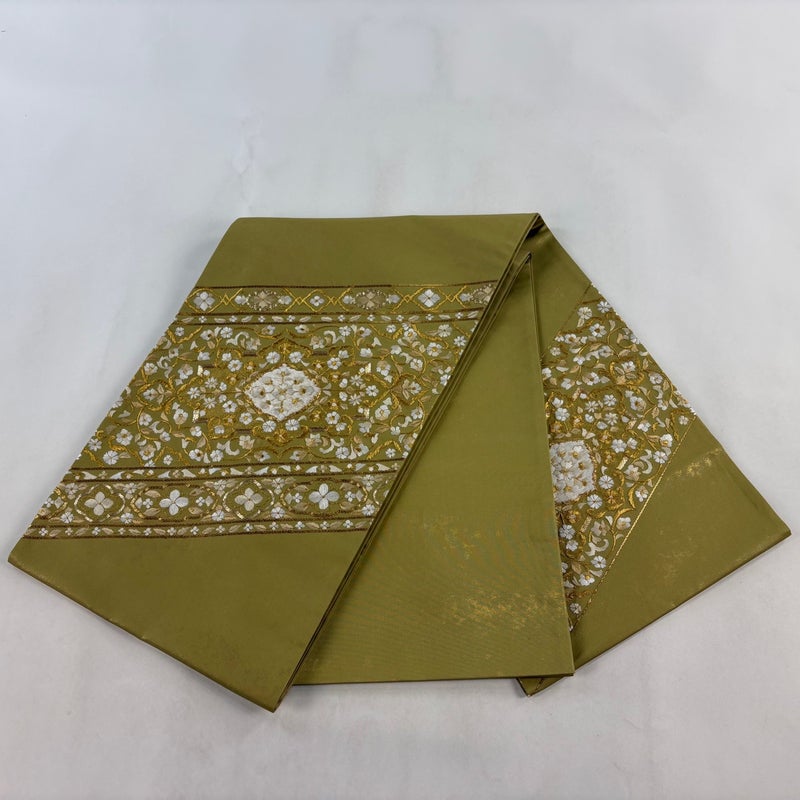 【袋帯】 緑系 抹茶色 名品 A 帯丈436cm以上 9990-29990 美品 二万以下
