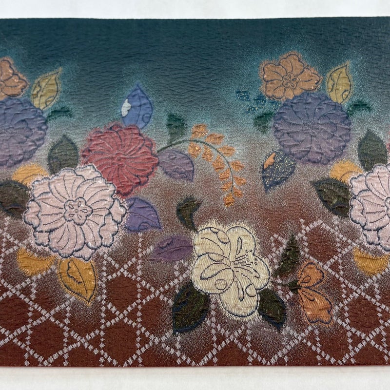 セミフォーマルでお使いいただける袋帯でございます。 見る人に重たい印象を感じさせない女性ならではの、気品豊かな一品です。 締め跡がございます。 リユース品としては目立った染み傷なく、状態の良いお品でございます。 ※なお、厳しく商品の状態確認を行っておりますが、記載の汚れ以外にも見落とし箇所がある可能性がある旨ご了承いただけますと幸いです。 沢山の商品の中からご覧いただき誠にありがとうございます。