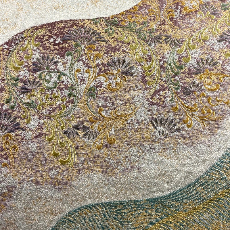 【着物ランク】名品 【素材】正絹 【帯丈】約432cm 【帯幅】約30.5cm 【帯仕立て】仕立て上がり 【状態ランク】ランクB 【帯着用シーン】セミフォーマル(色無地・付下げ)