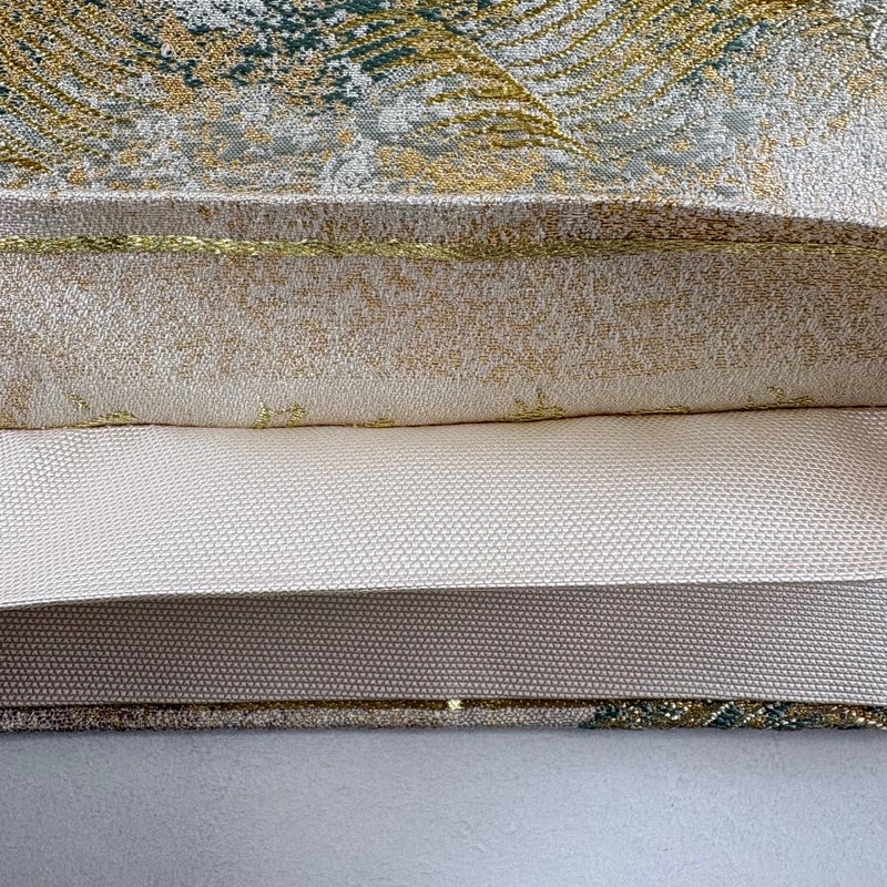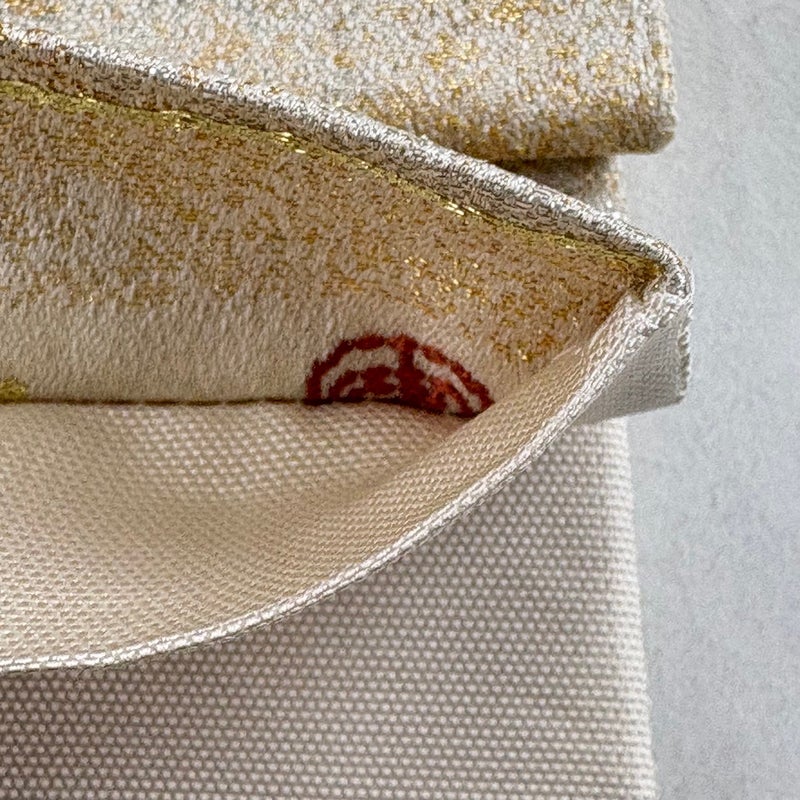 セミフォーマルでお使いいただける袋帯でございます。 見る人に重たい印象を感じさせない女性ならではの、気品豊かな一品です。 中無地所々に生地のヨレがございます。 リユース品としては良い状態で、まだまだご活用頂けると思われます。 ※なお、厳しく商品の状態確認を行っておりますが、記載の汚れ以外にも見落とし箇所がある可能性がある旨ご了承いただけますと幸いです。 沢山の商品の中からご覧いただき誠にありがとうございます。