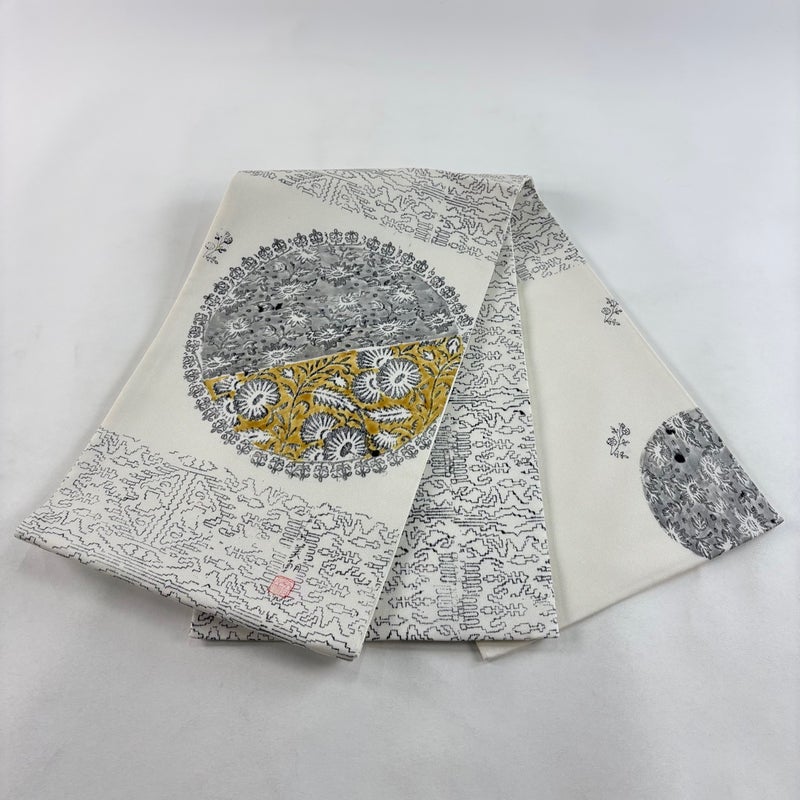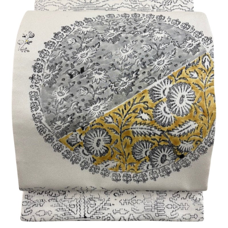 【袋帯】 白系 クリーム 名品 A 帯丈436cm以上 9990-29990 美品 二万以下