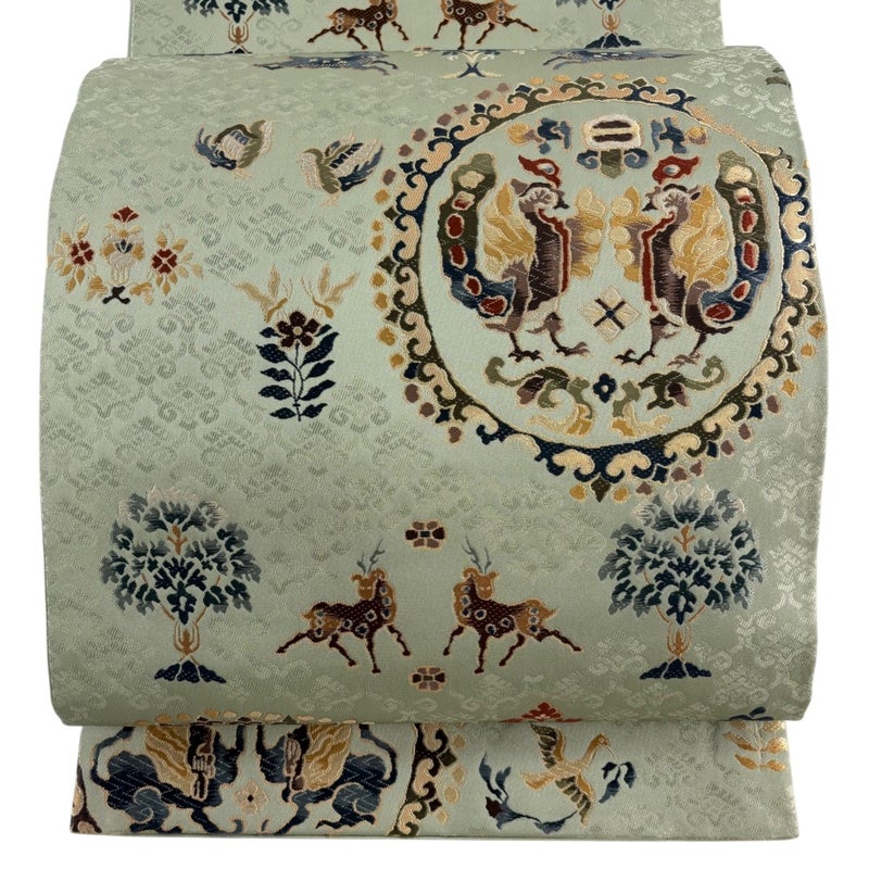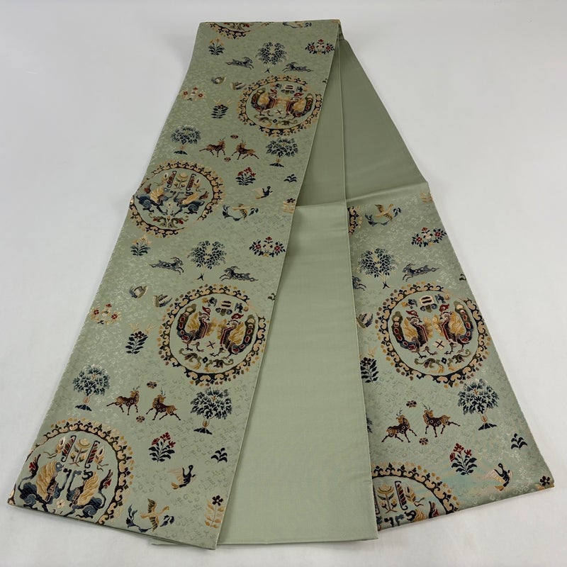 【袋帯】 灰色系 灰緑 名品 A 帯丈436cm以上 9990-29990 美品 二万以下