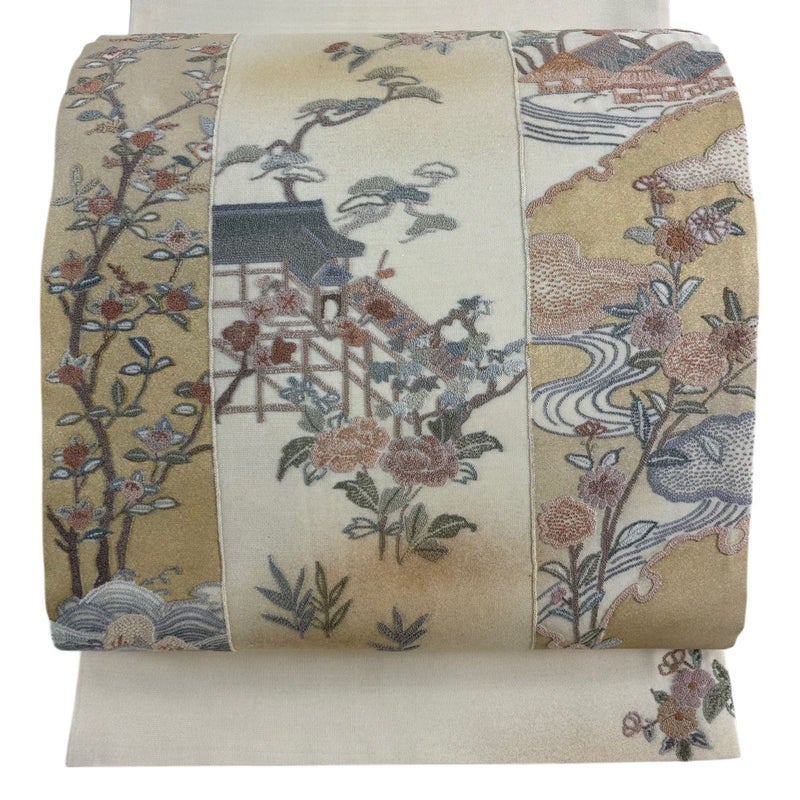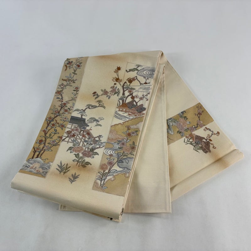 【着物ランク】名品 【素材】正絹 【帯丈】約428cm 【帯幅】約30.5cm 【帯仕立て】仕立て上がり 【状態ランク】ランクB 【帯着用シーン】セミフォーマル(色無地・付下げ)