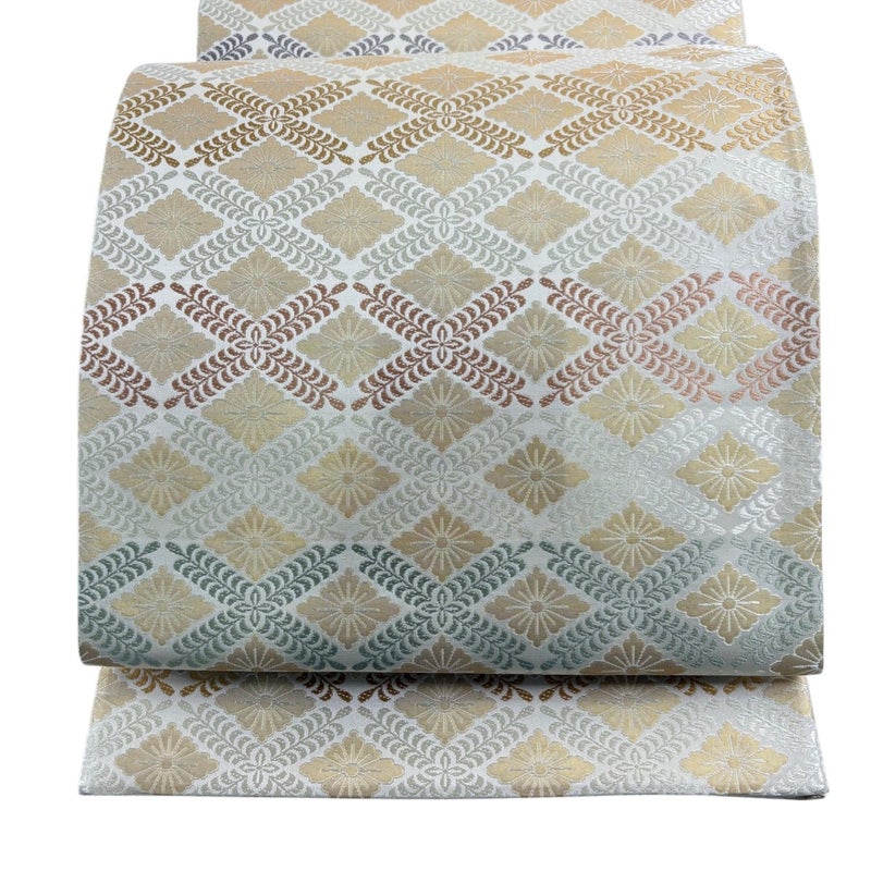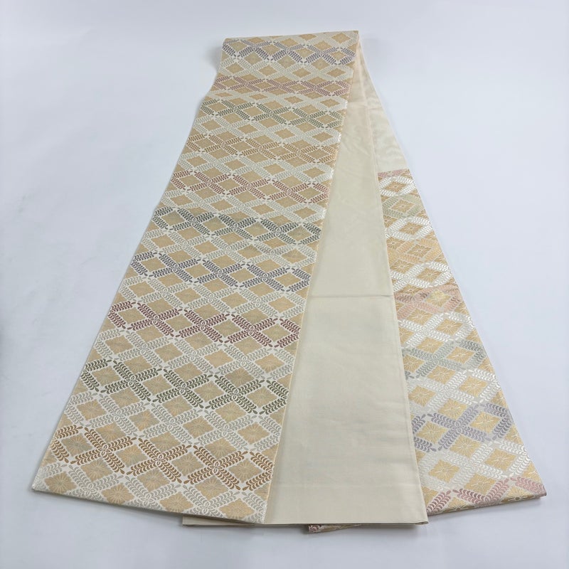 【袋帯】 白系 クリーム 名品 A 帯丈436cm以上 9990-29990 美品 二万以下