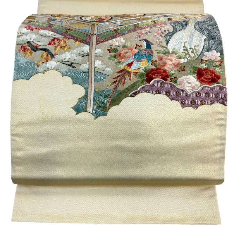 【着物ランク】秀品 【素材】正絹 【帯丈】約430cm 【帯幅】約31cm 【帯仕立て】仕立て上がり 【状態ランク】ランクC 【帯着用シーン】セミフォーマル(色無地・付下げ)