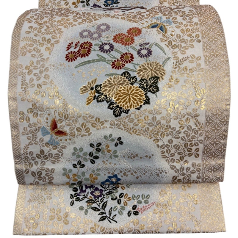 【袋帯】 灰色系 灰白 秀品 A 帯丈426cm~435cm 7990-9980 美品 二万以下