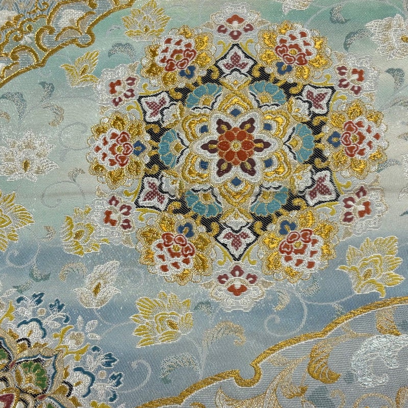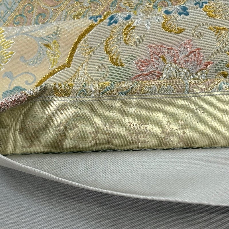 セミフォーマルでお使いいただける袋帯でございます。 見る人に重たい印象を感じさせない女性ならではの、気品豊かな一品です。 締め跡がございます。 お太鼓にシワがございます。 リユース品としては良い状態で、まだまだご活用頂けると思われます。 ※なお、厳しく商品の状態確認を行っておりますが、記載の汚れ以外にも見落とし箇所がある可能性がある旨ご了承いただけますと幸いです。 沢山の商品の中からご覧いただき誠にありがとうございます。 【PR2】