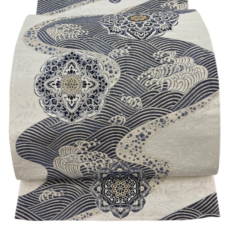 【袋帯】 灰色系 灰白 秀品 A 帯丈426cm~435cm 7990-9980 美品 二万以下