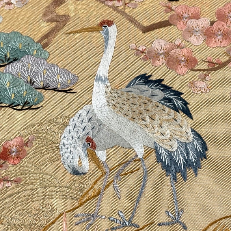 おめでたい席に相応しい意匠の袋帯でございます。 格式高いお席にもお使いいただけますので、お見逃しのないようお願いいたします。 締め跡がございます。 中無地締め跡沿いに汚れ、表地所々に箔の剥がれや変色がございます。 裏地にシミ、裏地の垂先に汚れがございます。 ご購入の際はその点ご留意ください。 ※なお、厳しく商品の状態確認を行っておりますが、記載の汚れ以外にも見落とし箇所がある可能性がある旨ご了承いただけますと幸いです。 沢山の商品の中からご覧いただき誠にありがとうございます。 【PR2】