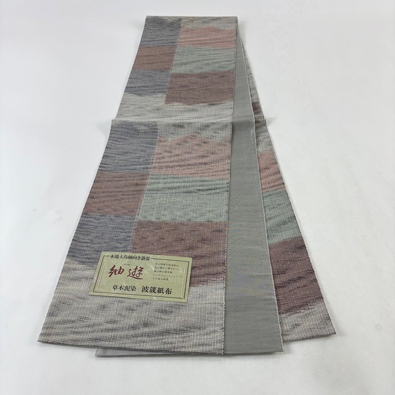 【着物ランク】秀品 【素材】正絹、紙 【帯丈】約458cm 【帯幅】約30.5cm 【帯仕立て】未仕立て 【状態ランク】ランクA 【帯着用シーン】普段使いの洒落帯(紬・小紋)