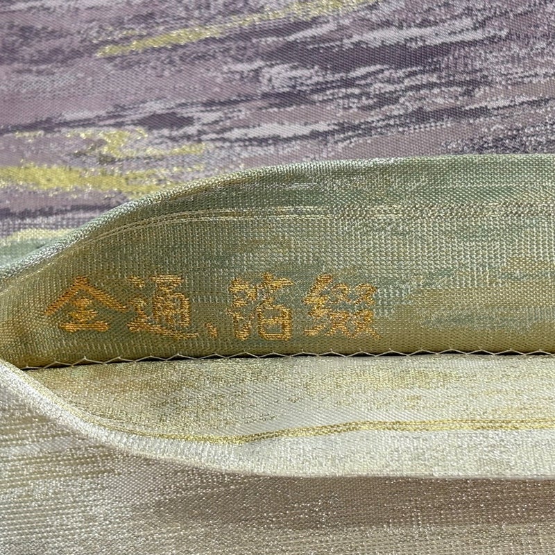 セミフォーマルでお使いいただける袋帯でございます。 見る人に重たい印象を感じさせない女性ならではの、気品豊かな一品です。 締め跡がございます。 前柄お太鼓間にシワがございます。 裏地所々にシワがございます。 リユース品としては目立った染み傷なく、状態の良いお品でございます。 ※なお、厳しく商品の状態確認を行っておりますが、記載の汚れ以外にも見落とし箇所がある可能性がある旨ご了承いただけますと幸いです。 沢山の商品の中からご覧いただき誠にありがとうございます。
