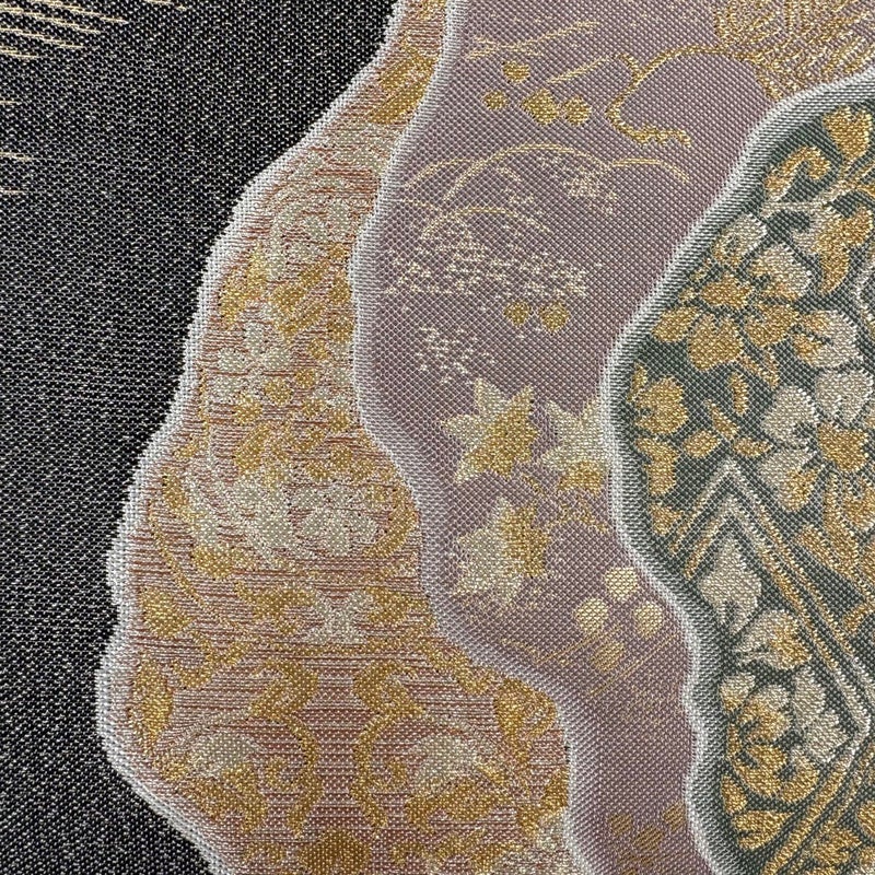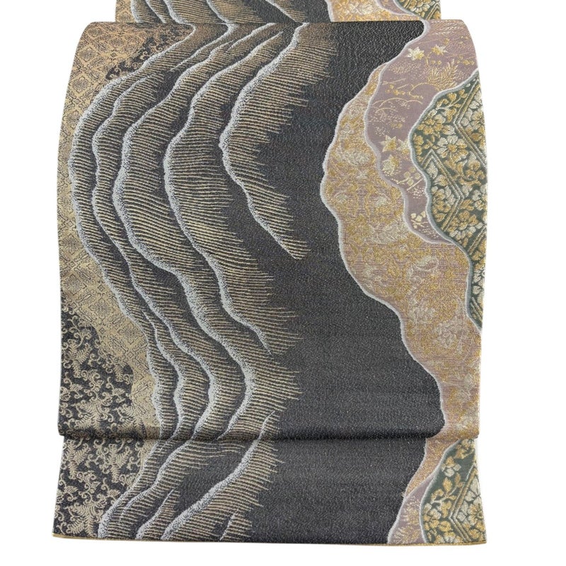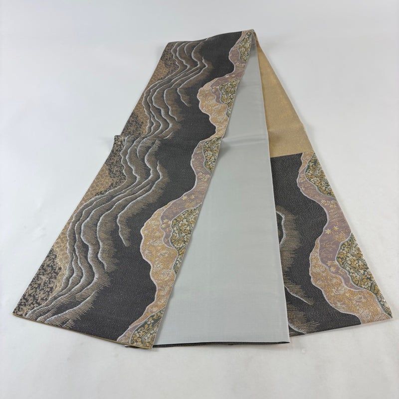【袋帯】 灰色系 黒灰 秀品 A 帯丈436cm以上 7990-9980 美品 二万以下