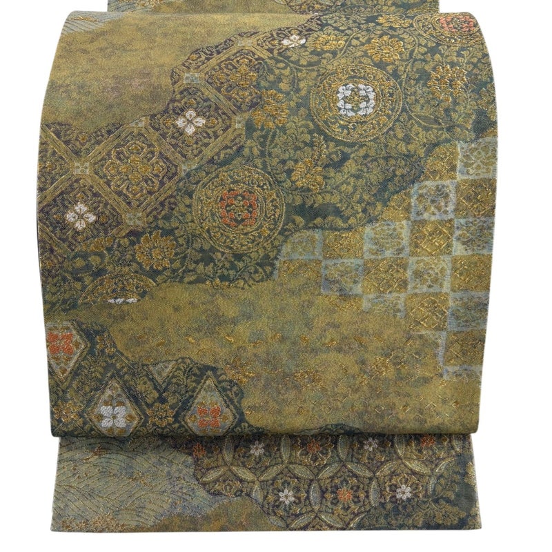 【袋帯】 灰色系 灰緑 秀品 A 帯丈426cm~435cm 7990-9980 美品 二万以下
