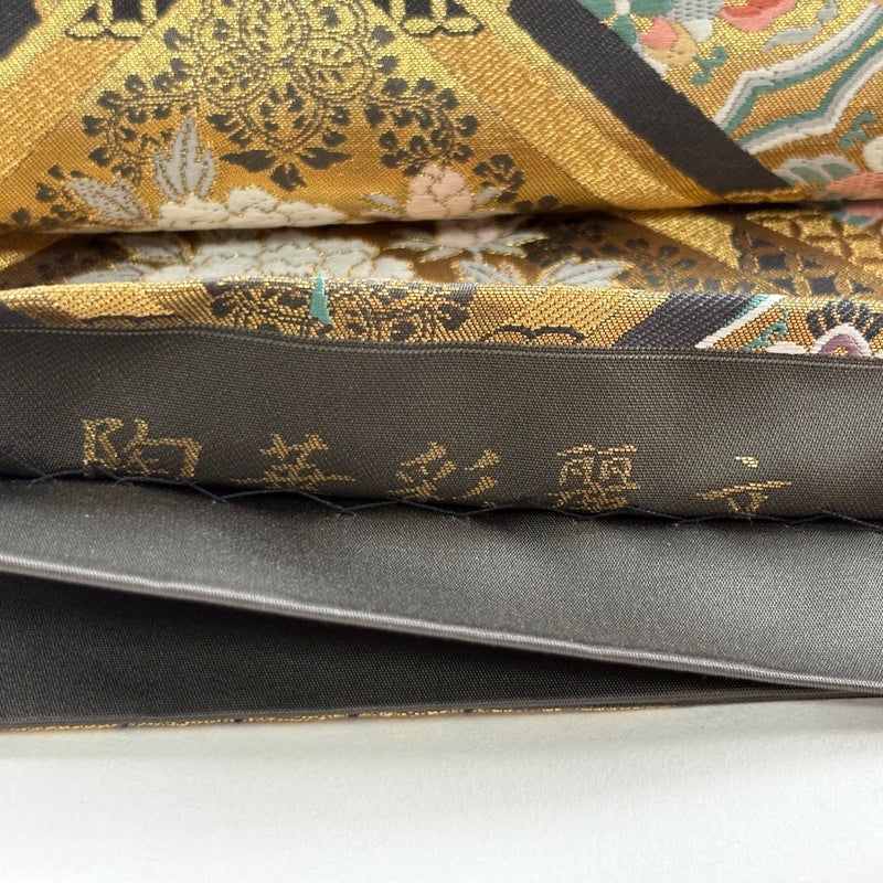 おめでたい席に相応しい意匠の袋帯でございます。 格式高いお席にもお使いいただけますので、お見逃しのないようお願いいたします。 帯芯が入っておりません。 ※商品の仕立て上、垂先と手先の織り出し口から裏地が若干はみ出ております。 裏地所々に生地のヨレがございますが、 リユース品としては目立った染み傷なく、状態の良いお品でございます。 ※なお、厳しく商品の状態確認を行っておりますが、記載の汚れ以外にも見落とし箇所がある可能性がある旨ご了承いただけますと幸いです。 沢山の商品の中からご覧いただき誠にありがとうございます。