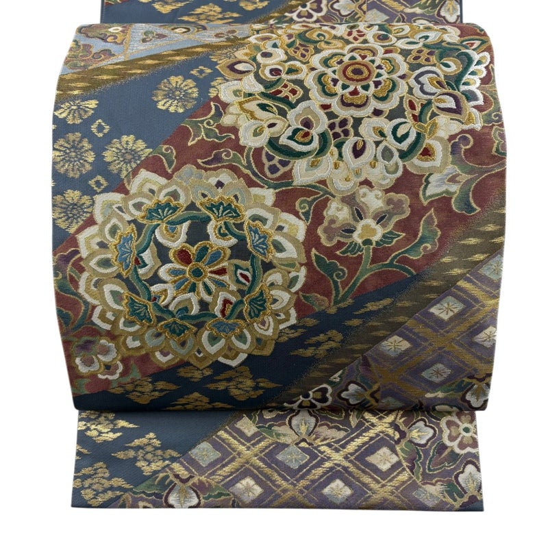 【袋帯】 灰色系 青灰色 秀品 A 帯丈436cm以上 7990-9980 美品 二万以下