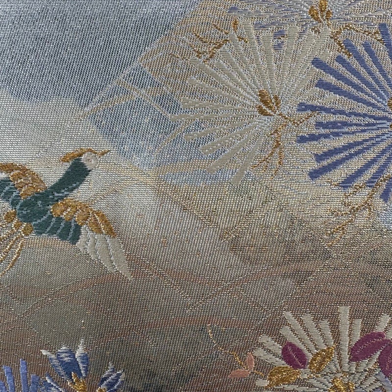 セミフォーマルでお使いいただける袋帯でございます。 見る人に重たい印象を感じさせない女性ならではの、気品豊かな一品です。 帯芯が入っておりません。 締め跡がございます。 お太鼓垂先間に擦れがございます。 リユース品としては目立った染み傷なく、状態の良いお品でございます。 ※なお、厳しく商品の状態確認を行っておりますが、記載の汚れ以外にも見落とし箇所がある可能性がある旨ご了承いただけますと幸いです。 沢山の商品の中からご覧いただき誠にありがとうございます。
