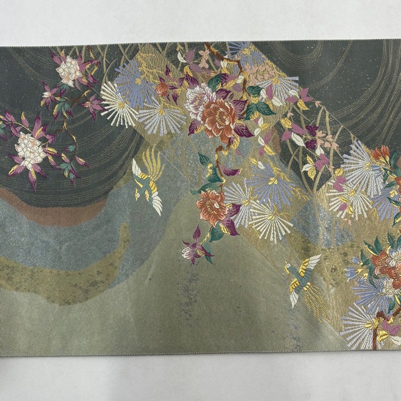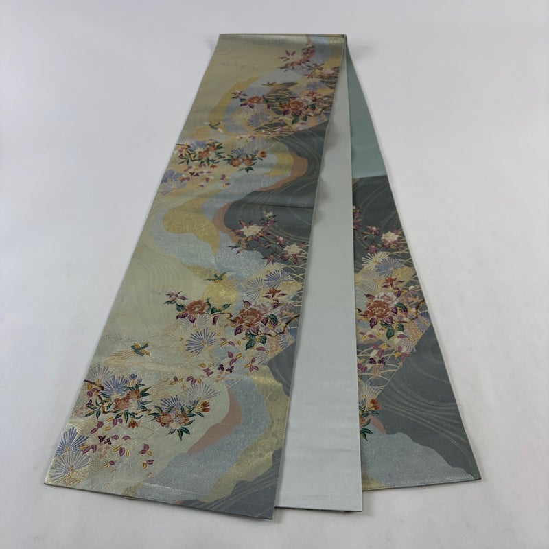 【袋帯】 灰色系 灰緑 秀品 A 帯丈436cm以上 7990-9980 美品 二万以下