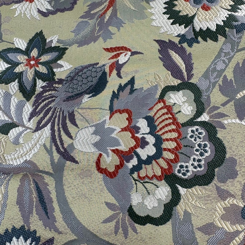 セミフォーマルでお使いいただける袋帯でございます。 見る人に重たい印象を感じさせない女性ならではの、気品豊かな一品です。 締め跡がございます。 お太鼓柄部分と中無地所々に薄いシミ、表地所々に若干糸ゆるみがございます。 リユース品としては良い状態で、まだまだご活用頂けると思われます。 ※なお、厳しく商品の状態確認を行っておりますが、記載の汚れ以外にも見落とし箇所がある可能性がある旨ご了承いただけますと幸いです。 沢山の商品の中からご覧いただき誠にありがとうございます。