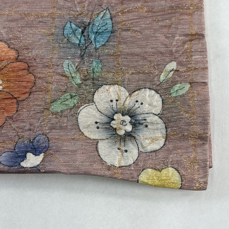セミフォーマルでお使いいただける袋帯でございます。 見る人に重たい印象を感じさせない女性ならではの、気品豊かな一品です。 締め跡がございます。 手先前柄間所々にシワ、垂先に仕立ての歪みがございます。 裏地の垂先に生地のヨレ、裏地締め跡沿いに薄汚れがございます。 リユース品としては良い状態で、まだまだご活用頂けると思われます。 ※なお、厳しく商品の状態確認を行っておりますが、記載の汚れ以外にも見落とし箇所がある可能性がある旨ご了承いただけますと幸いです。 沢山の商品の中からご覧いただき誠にありがとうございます。