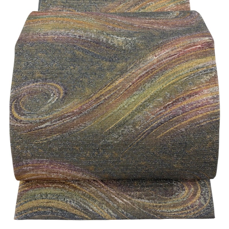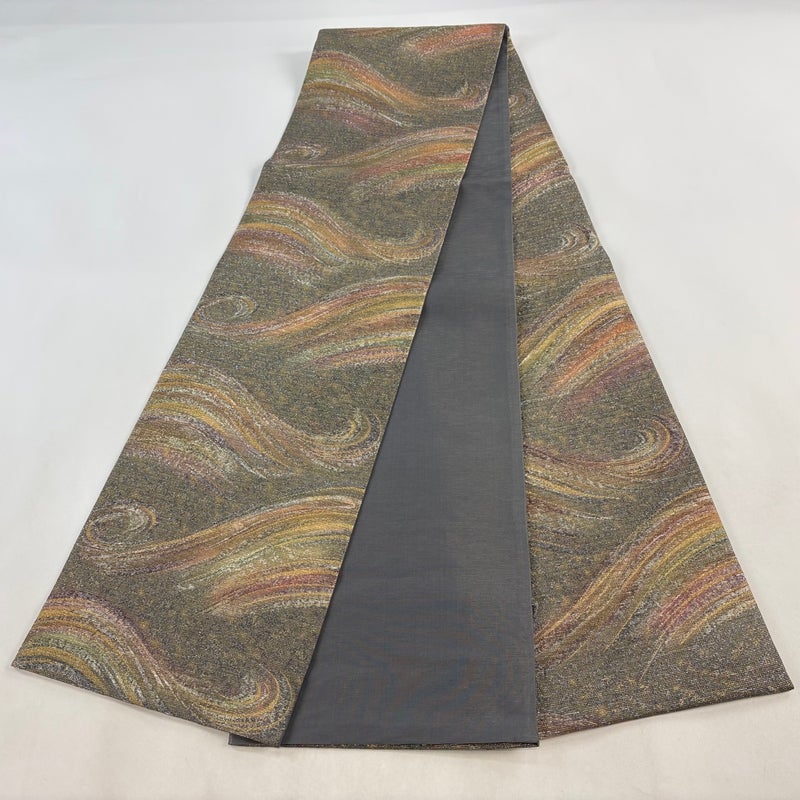 【袋帯】 灰色系 灰緑 名品 A 帯丈436cm以上 9990-29990 美品 二万以下