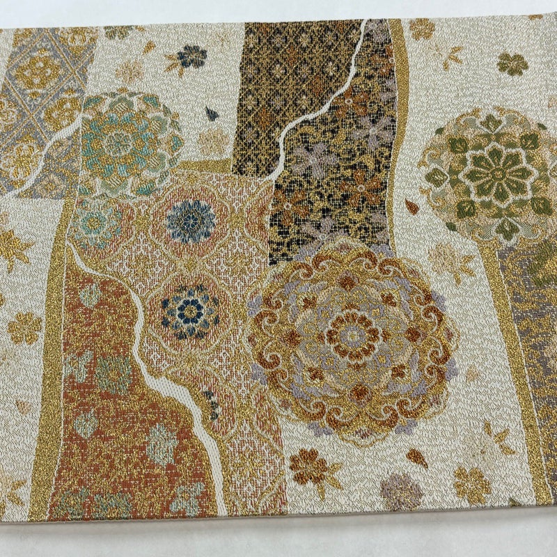 【袋帯】 白系 クリーム 秀品 A 帯丈436cm以上 7990-9980 美品 二万以下