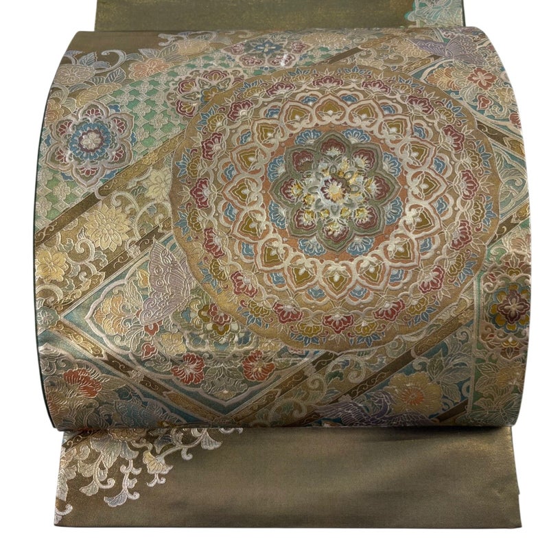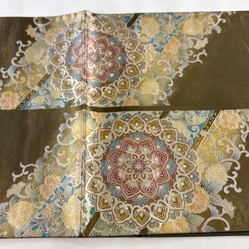 【袋帯】 茶系 茶緑色 秀品 B 帯丈436cm以上 4000-7980 二万以下