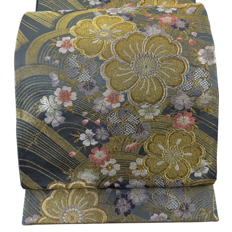 【袋帯】 灰色系 灰緑 秀品 B 帯丈436cm以上 4000-7980 二万以下
