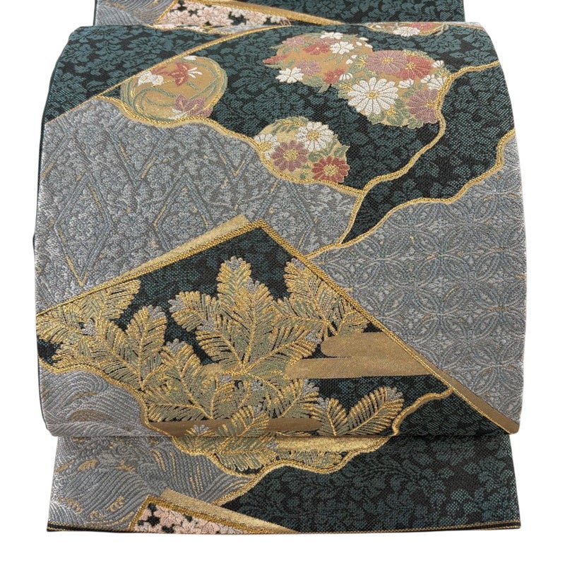 【袋帯】 緑系 深緑 秀品 A 帯丈426cm~435cm 7990-9980 美品 二万以下