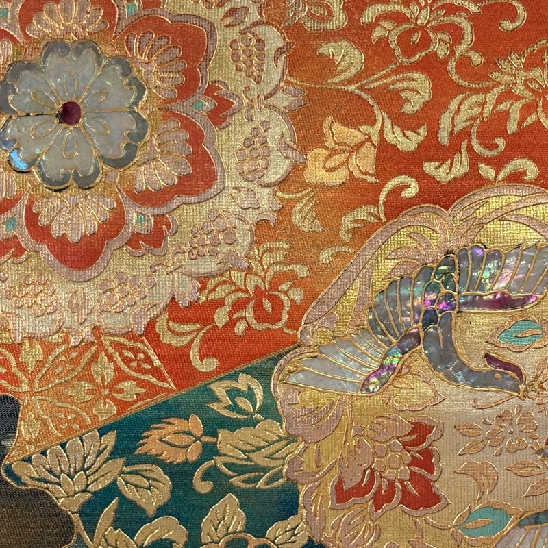 おめでたい席に相応しい意匠の袋帯でございます。 格式高いお席にもお使いいただけますので、お見逃しのないようお願いいたします。 締め跡がございます。 お太鼓柄部分と前柄柄部分に金彩の剥がれ、お太鼓柄部分と前柄柄部分に金彩の変色、締め跡沿いに箔の傷みがございます。 ご購入の際はその点ご留意ください。 ※なお、厳しく商品の状態確認を行っておりますが、記載の汚れ以外にも見落とし箇所がある可能性がある旨ご了承いただけますと幸いです。 沢山の商品の中からご覧いただき誠にありがとうございます。