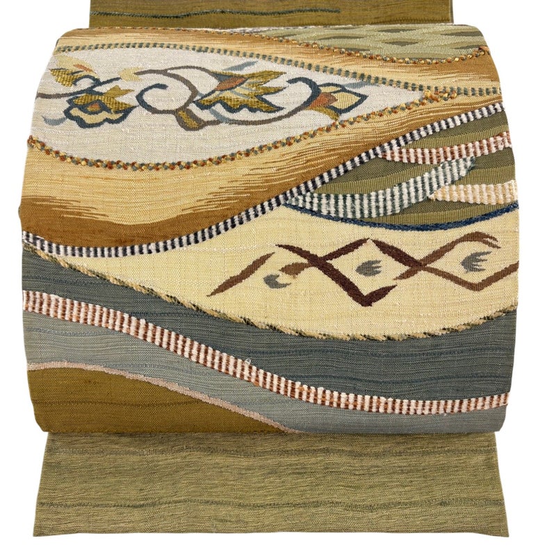 【袋帯】 緑系 抹茶色 秀品 A 帯丈436cm以上 7990-9980 美品 二万以下