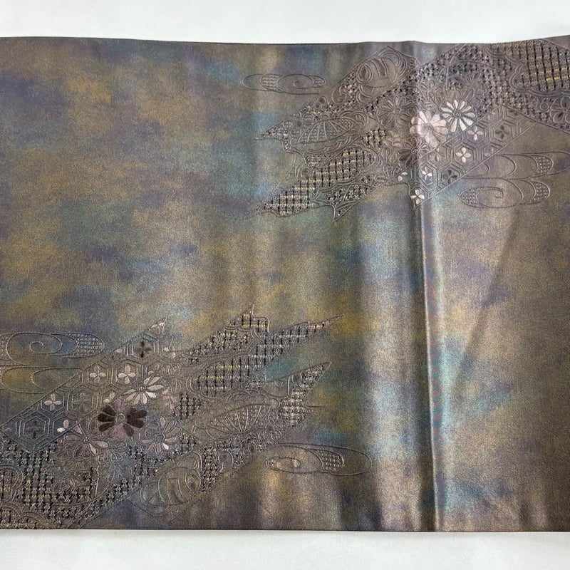 セミフォーマルでお使いいただける袋帯でございます。 見る人に重たい印象を感じさせない女性ならではの、気品豊かな一品です。 リユース品としては目立った染み傷なく、状態の良いお品でございます。 ※なお、厳しく商品の状態確認を行っておりますが、記載の汚れ以外にも見落とし箇所がある可能性がある旨ご了承いただけますと幸いです。 沢山の商品の中からご覧いただき誠にありがとうございます。
