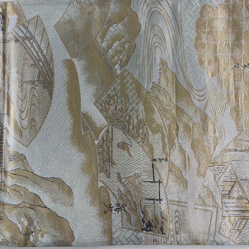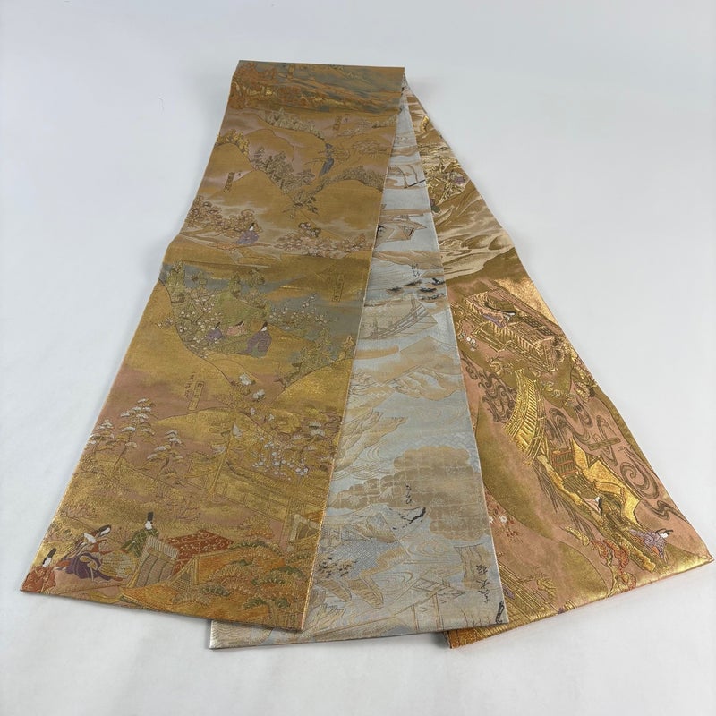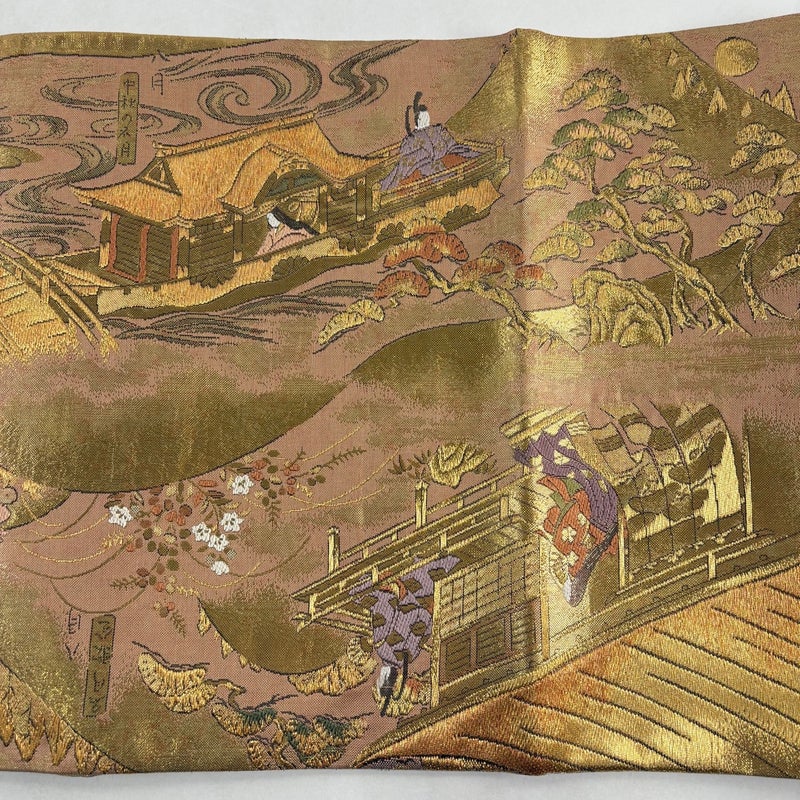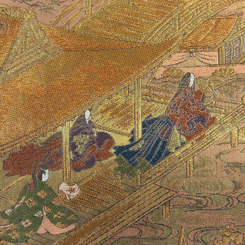 【美品】 袋帯 秀品 御所風景 人物 金糸 箔 金色 お太鼓柄 正絹