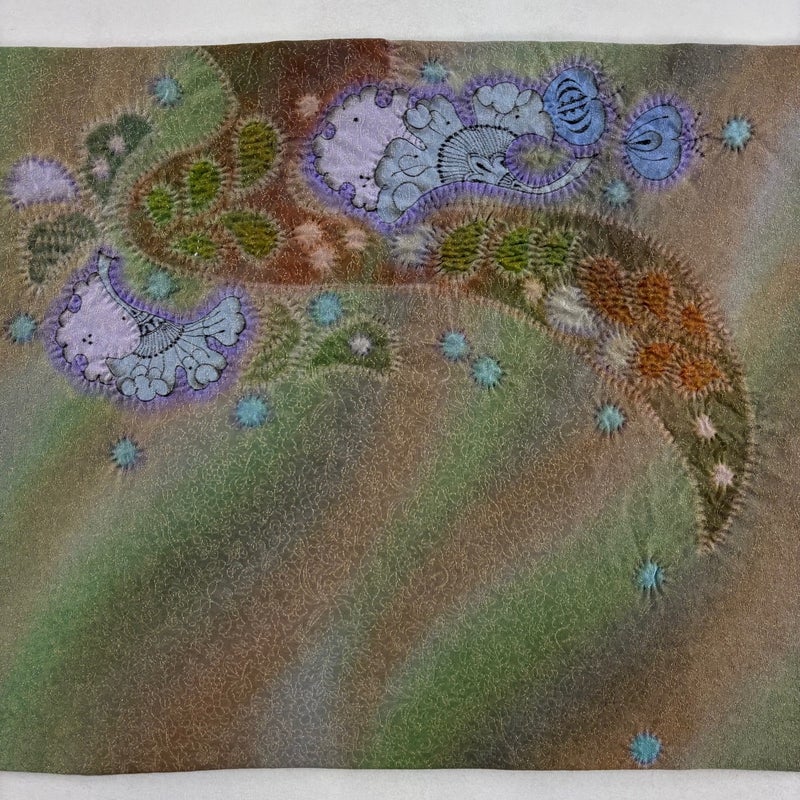 染色工芸家である久保田一竹の意思を継ぐ一竹工房が手掛けた作品でございます。 おめでたい席に相応しい意匠の袋帯でございます。 格式高いお席にもお使いいただけますので、お見逃しのないようお願いいたします。 締め跡がございます。 リユース品としては目立った染み傷なく、状態の良いお品でございます。 ※なお、厳しく商品の状態確認を行っておりますが、記載の汚れ以外にも見落とし箇所がある可能性がある旨ご了承いただけますと幸いです。 沢山の商品の中からご覧いただき誠にありがとうございます。 【PR2】